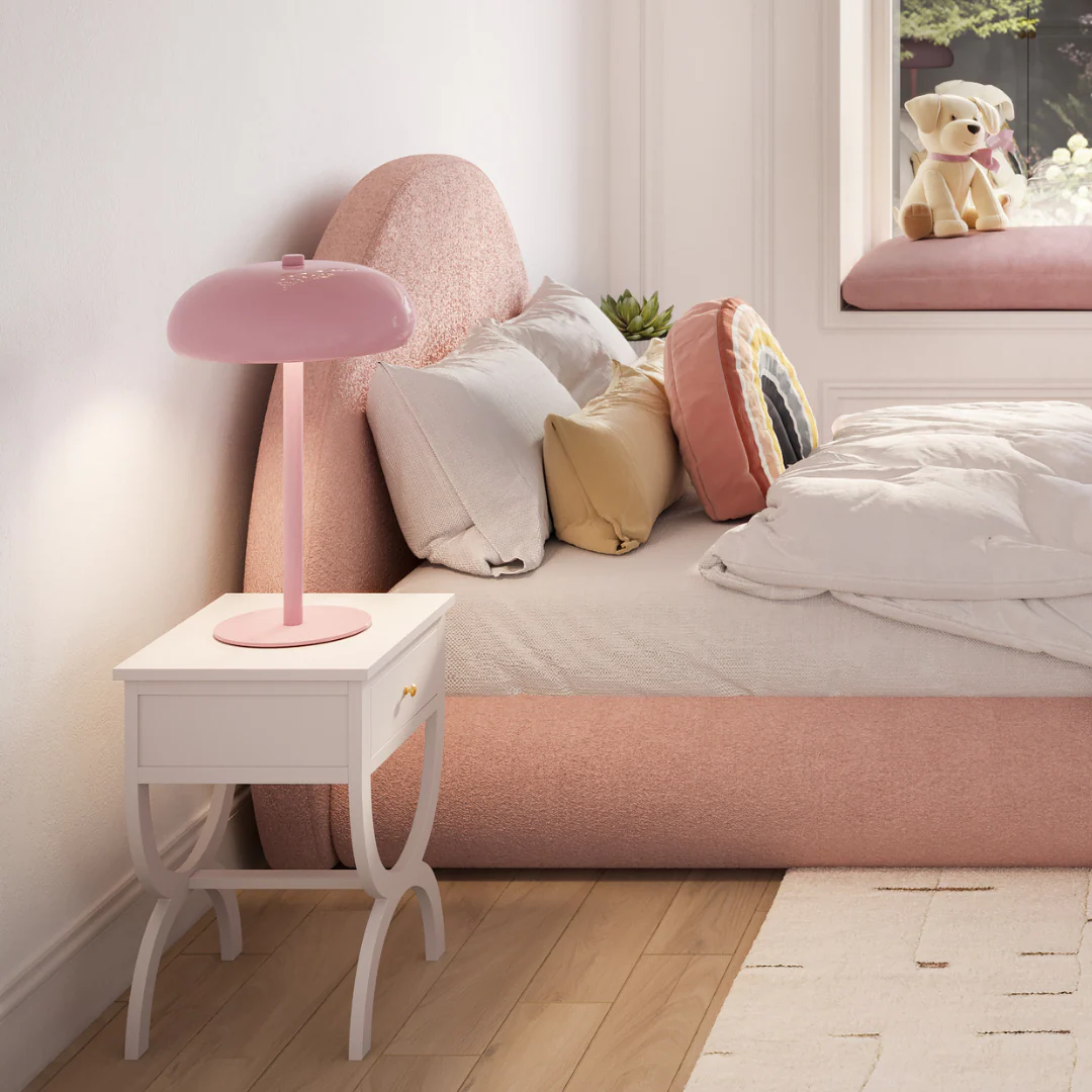 Like snuggling into a cloud. Create a soft, safe space for your little one to land with our half-moon upholstered kids headboard. Crafted with premium materials, resilient fabrics, and joyful colors, the cushiony headboard protects them from bumps and bonks, whether settling in for sweet dreams or letting their imagination run wild. Designed to put their noggin—and your mind—at ease.