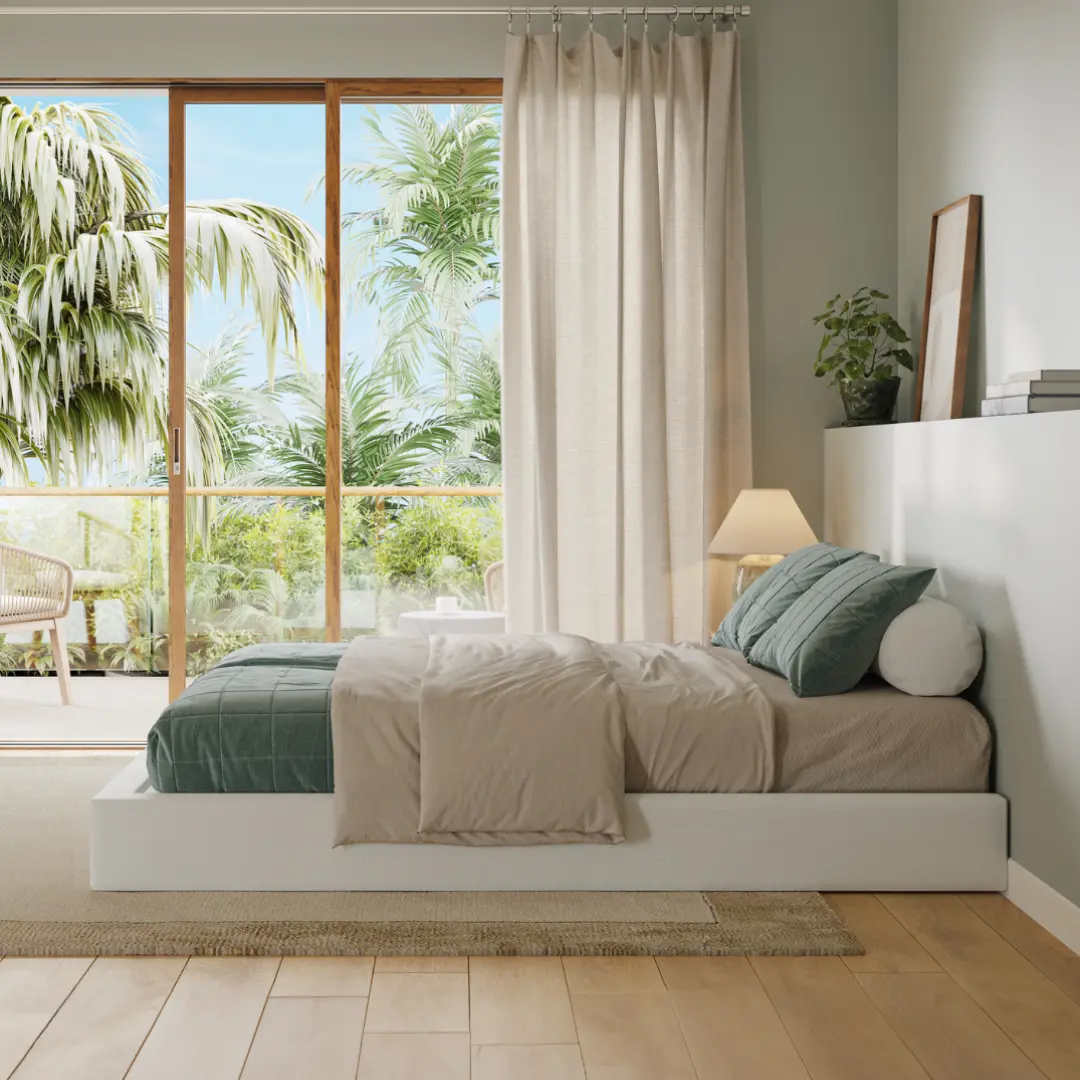 Space-savvy design meets plush cloud bed comfort. Soften your bedroom with our patented one-piece, all-cushioned, upholstered bed frame, part of our premium collection of bed frames. Crafted with premium materials and resilient fabrics. Designed to put you—and your toes and shins—at ease.
